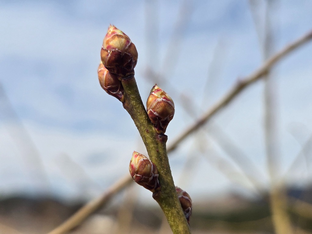 花が咲くのはまだ一ヶ月以上先ですが、ブルーベリーの花芽も膨らんできました。