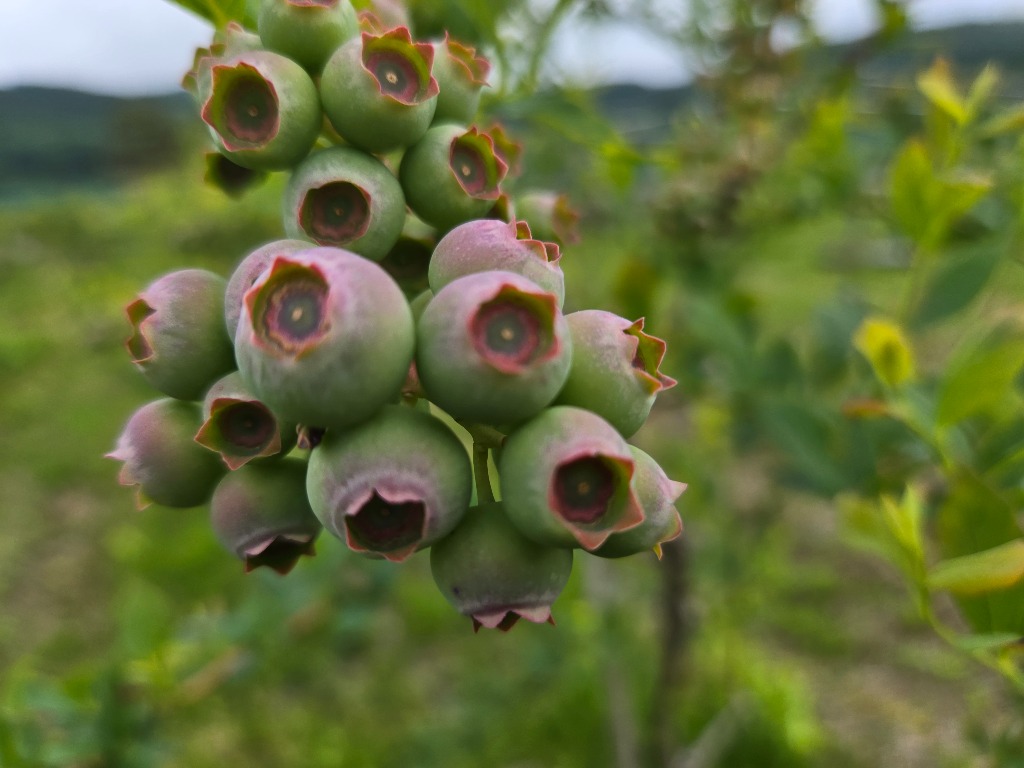 現在農園のブルーベリーは半分ほど花が咲き終わり、実が付き始めました。