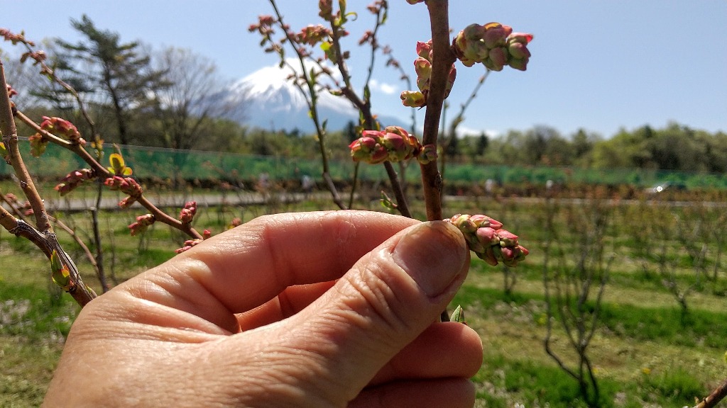 当ファームのある山中湖村では桜が4月の下旬頃見ごろになり、ブルーベリーの花は桜が散り始める頃から開花してきます。